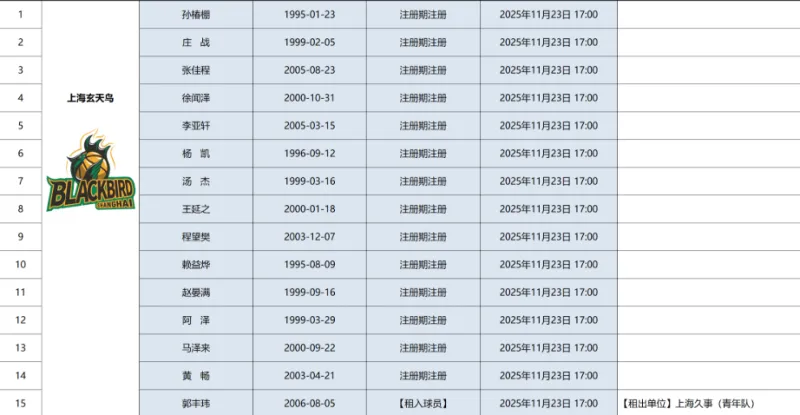 半岛体育官方平台_英超NBA赛事直播_电竞赛事数据分析流言板]NBL上海玄天鸟队国内球员信息:庄战、赖益烨、汤杰在列
