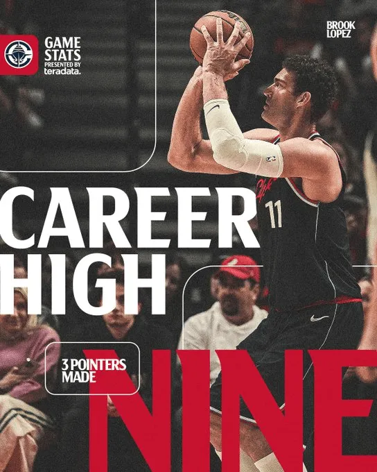 “洛佩斯命中9记三分球,创下NBA历史上中锋单场三分命中数第二高纪录。”快船官方附文道。