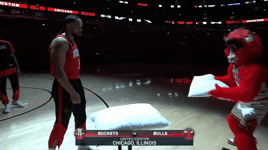 等待期间,泰勒-希罗和公牛吉祥物Benny比拼中场背投三分,Benny第一次尝试就投进,随后希罗摆手表示投降。