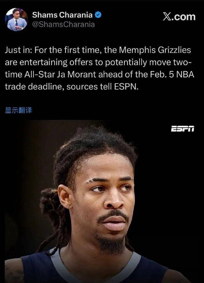 此外,莫兰特近几个赛季的出勤率也极为糟糕。自2023-24赛季起到现在,他三年累计只打了77场常规赛,主要原因是频繁的伤病和场外问题导致他进医院次数多于出现在球场的次数。可以说,如今的莫兰特已经远非昔日那个全明星球员,对灰熊来说已成为一种负担,交易价值严重受限。更糟的是,目前市场尚未浮现愿意接盘的潜在买家。莫兰特所签合同将在2028年到期,未来两年薪资高达8706万美元,买家压力巨大。