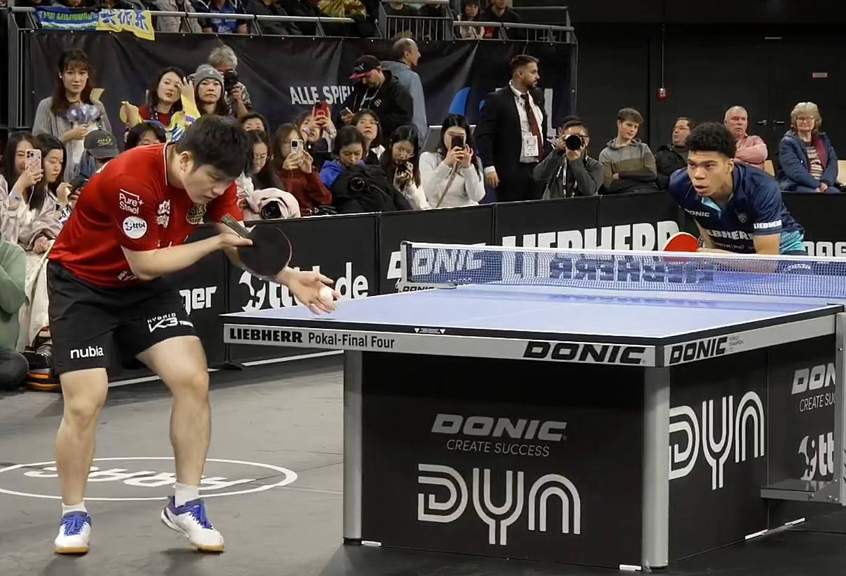 樊振东是国际乒坛非常知名的顶尖球员,曾长期担任中国国家队领军人物。然而,自2024年巴黎奥运会结束后,他逐渐淡出全球排名和国际大赛,不再作为国家队成员参加比赛。如今,樊振东更多时间投入国内赛事,代表上海队征战全运会、全国锦标赛及乒超联赛,同时也活跃于欧洲赛场,效力于德国萨尔布吕肯俱乐部,参加德甲联赛、德国杯以及欧冠联赛。新年伊始,樊振东便选择以德国杯半决赛为新赛季开端,携手队友向决赛席位发起冲击。他被安排在关键的第二和第四盘出场,首场面对对手奥克森豪森队的葡萄牙年轻新星阿比奥顿,二人实力差距明显,爆冷几乎无望。