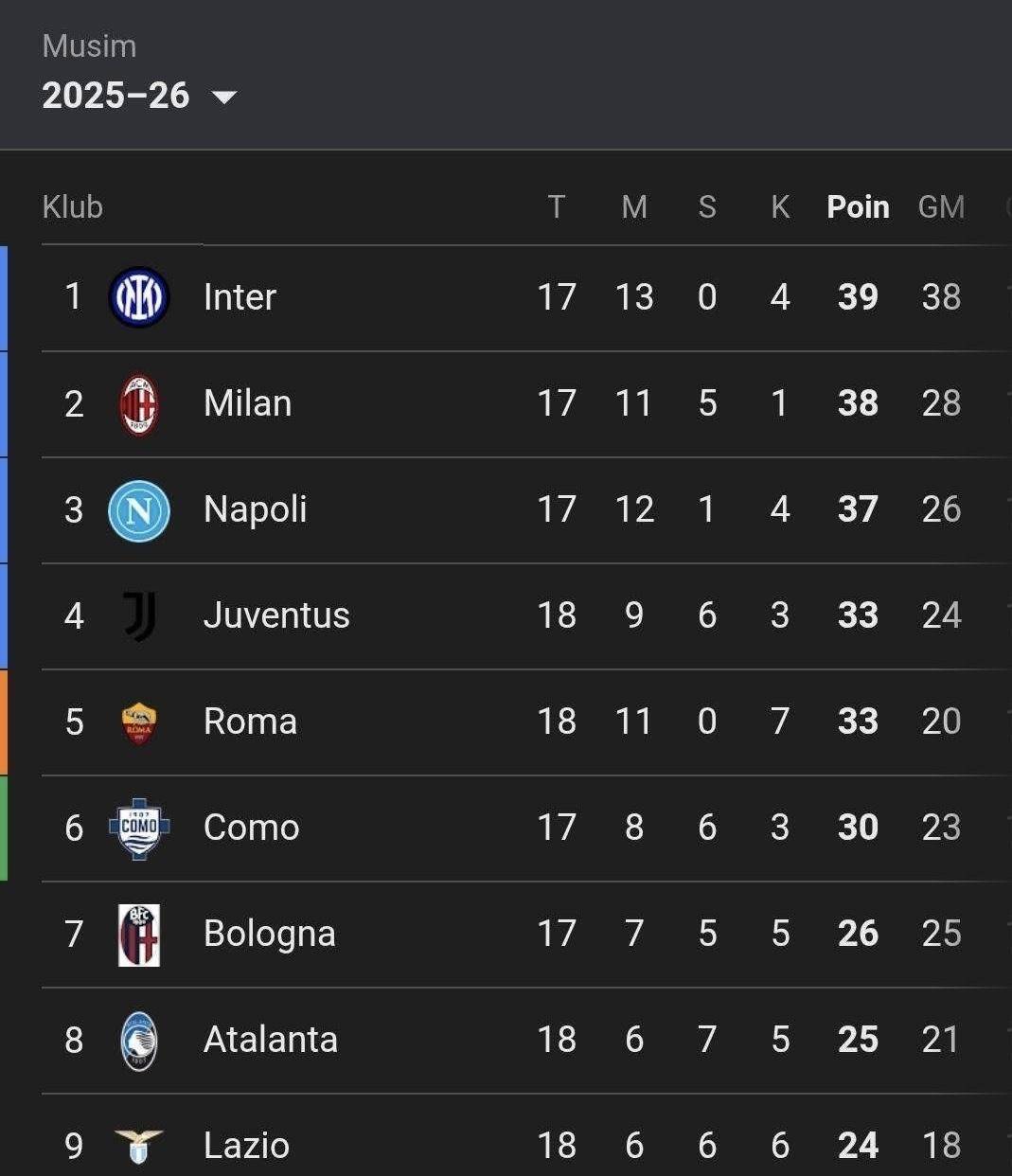 在他们身后,博洛尼亚和科莫这两匹黑马,少赛一轮同积30分,虎视眈眈。 就连排名第八的亚特兰大,在击败罗马后,距离欧战区也只有一步之遥。 这意味着,从第四名到第八名,至少有五支球队卷入了这场欧冠资格的“大逃杀”。 每一轮比赛结束,积分榜都可能发生地震级的变化。