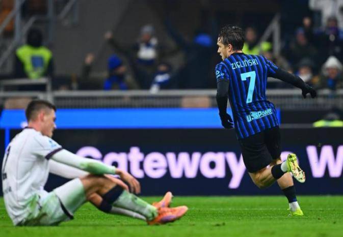 第26分钟,国米继续施压,巴斯托尼的头球攻门又一次被拉瓦利亚拒之门外。持续进攻的国米终于在第40分钟打破僵局:劳塔罗在右路吸引防守后无私横传,左路跟进的泽林斯基迎球怒射破门,国米1-0领先。