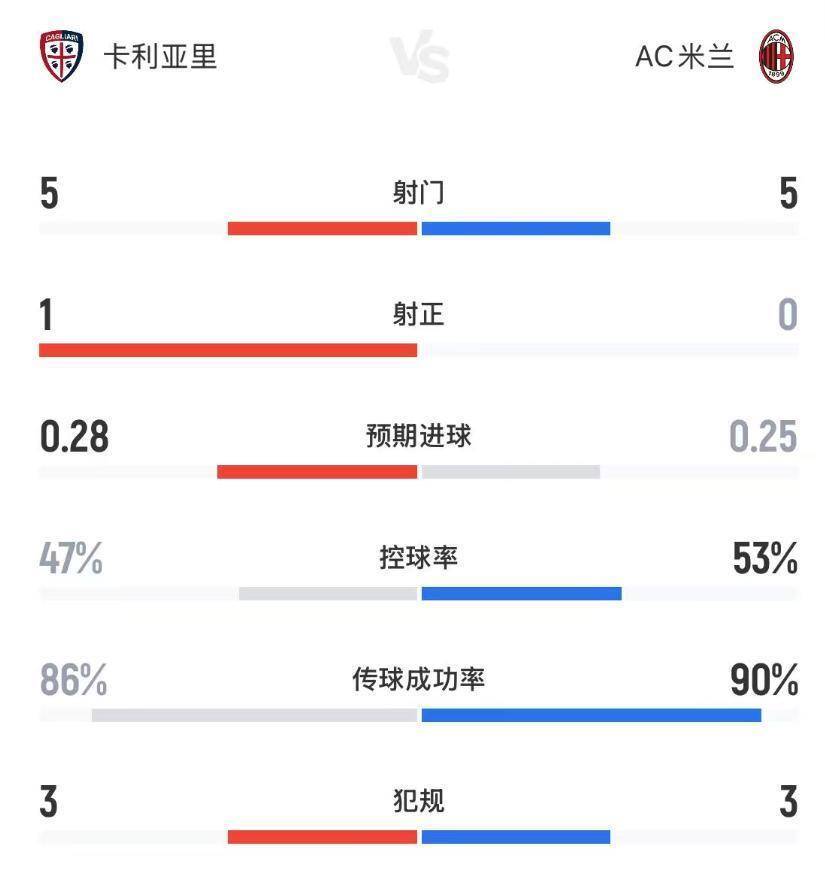 半场数据显示,双方控球率相差无几(米兰53%对47%),射门数均为5次,但卡利亚里1次射正,米兰则0射正。 阿莱格里赛后坦言:“我们开局糟糕,前两分钟就被对手三次射门……球队踢得缺乏条理。 ”