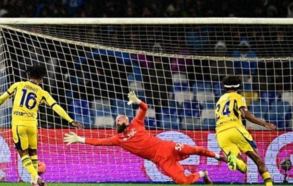 那不勒斯这场球,看得人心里七上八下。 开场明明是他们的节奏,控球率占优,围着维罗纳打。 可谁想到,第27分钟,自家的球门就被捅了两次。 第一个丢球,是维罗纳一次简单的反击,马丁-弗雷泽用脚后跟那么一磕,球就滚进了网窝。 没过多久,后卫布翁焦尔诺禁区内手球,裁判看了VAR,点球。 吉夫特一蹴而就。 圣保罗球场一下子安静了。 你能感觉到场上的球员也有点发懵,踢得热闹,但刀刀不见血。 锋线上的霍伊伦,机会喂到嘴边了,不是越位就是手球,两个进球被吹掉,状态凉得透透的。