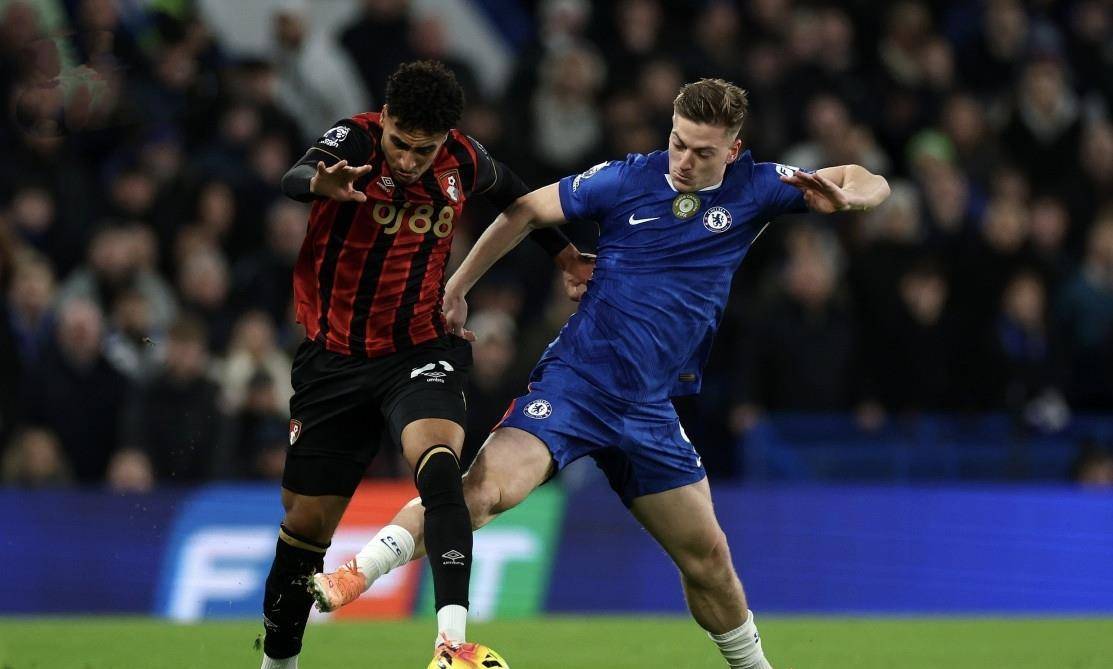 与酋长球场的狂欢形成鲜明对比的,是斯坦福桥的郁闷。 切尔西对阵伯恩茅斯的比赛,剧本堪称“过山车”。 比赛第7分钟,伯恩茅斯就给了切尔西一记闷棍。 他们掷出大力界外球直接扔进禁区,在一片混乱中,戴维-布鲁克斯近距离捅射破门,客场1比0领先。