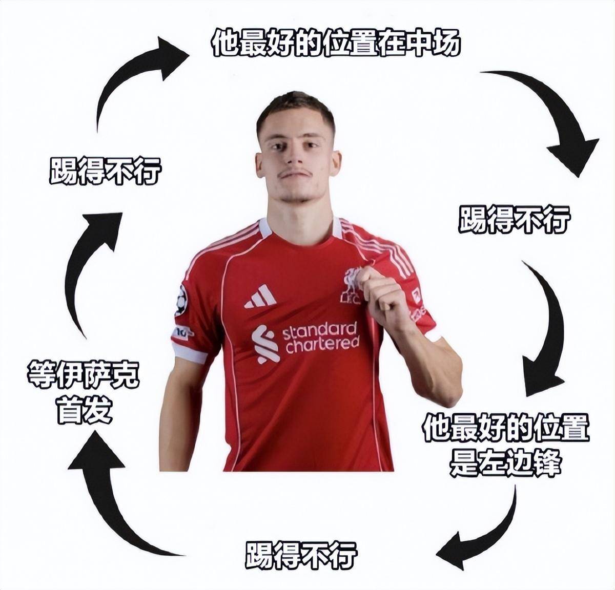 利物浦球迷认为维尔茨能够成功的理由在于,本赛季加盟豪门的英超新援中,确实不乏“特工007”式的球员。无论是曼联的库尼亚,还是切尔西的吉滕斯,均曾遭遇过零进球、零助攻的尴尬局面。同样,热刺的哈维·西蒙斯也一直被质疑为引援失败。