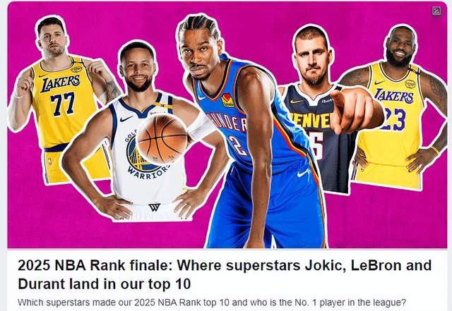 对球迷而言,榜单更该是观赛指南:东契奇能否率湖人进总决赛打脸皮蓬?文班亚马能否助马刺进季后赛坐稳前五?约基奇能否再夺冠军巩固 “第一人” 地位?这些赛场故事,远比排名数字更有魅力。
