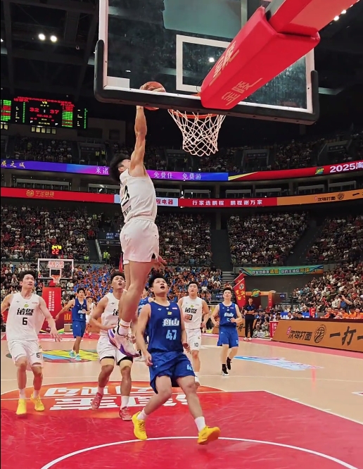 在主场对阵舟山队的比赛中,蒋官洋更是在西施篮球中心上演了实战扣篮,爆发力惊人!