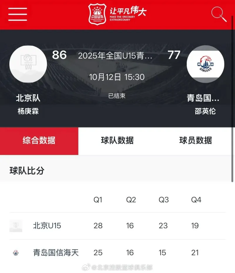半岛体育官方平台_英超NBA赛事直播_电竞赛事数据分析流言板]北控发文:U15男篮在全国青少年篮球联赛14决赛中战胜青岛