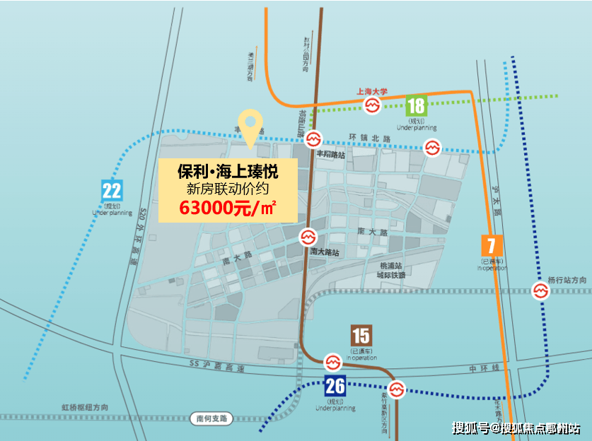 联动价约6.3万/㎡的保利海上瑧悦,直线km,与南山前湾拾缦、招商虹桥公馆三期、颛桥紫薇花园等项目到市区的距离相近,价格上也更具有优势!