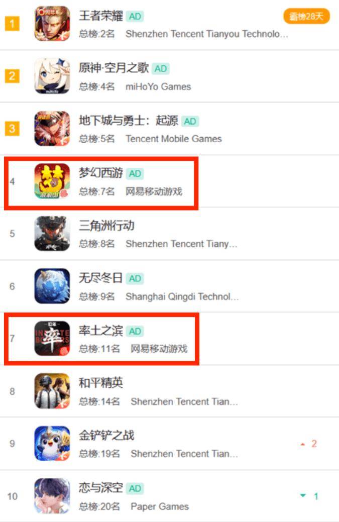 根据今日的AppStore畅销榜排名,网易一共只有两款手游进入Top10行列,分别是《梦幻西游手游》与《率土之滨》。而这两款产品正是由梦幻事业部与第十事业部所推出,它们已上线已有十年,毫无疑问是网易最能打的两大“长青手游”。