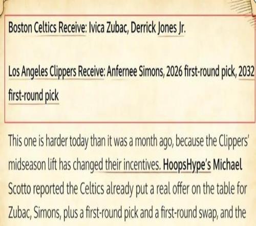 如今,凯尔特人有望提升他们报价,筹码变为:小西蒙斯+2026年首轮签+2032年的首轮签。