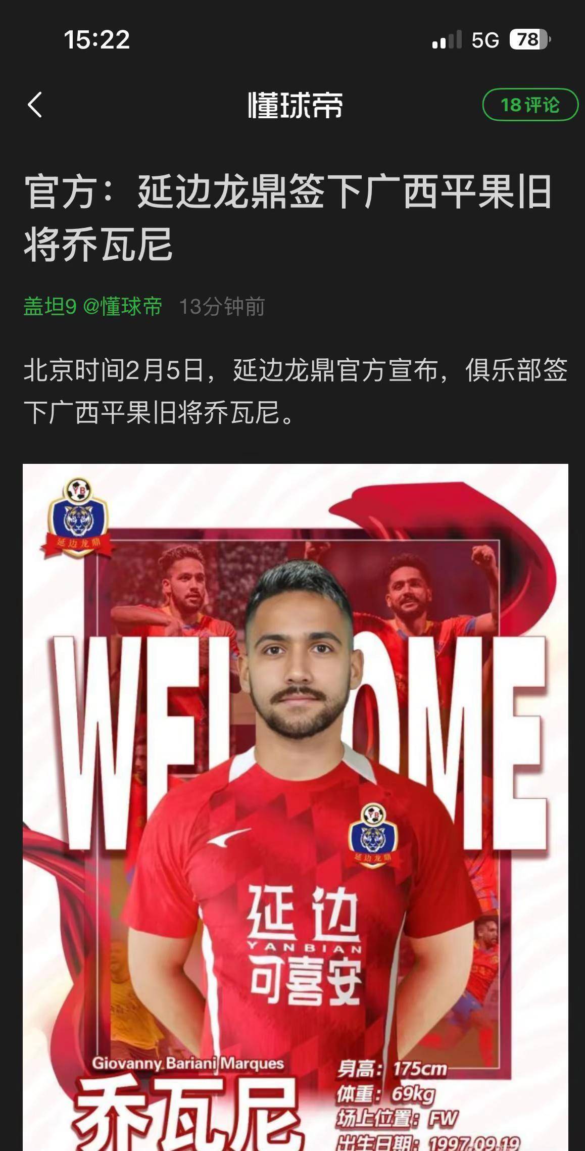 终于官宣了!乔瓦尼加盟延边龙鼎2026年2月5日延边龙鼎俱乐部一纸官宣震动足坛:乔瓦尼身披战袍:征战新赛季半岛体育官方平台_英超NBA赛事直播_电竞赛事数据分析
